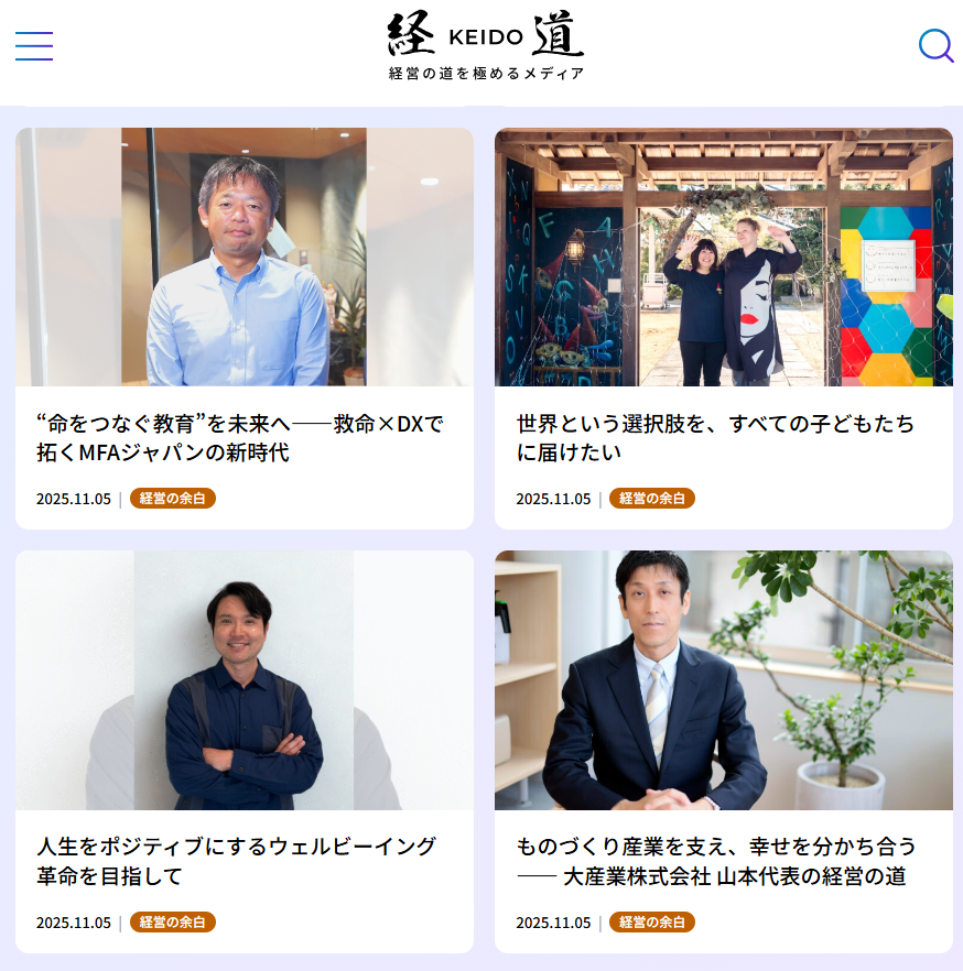 『経道』は、多種多様な業種の経営者の挑戦やビジョンをより多くの方へ伝えるメディアです。